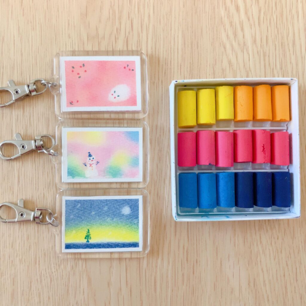 近隣在住のMayo先生によるパステルアートのワークショップ、冬休みは、描いたパステルアートでストラップを作ります。
